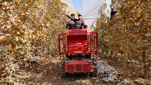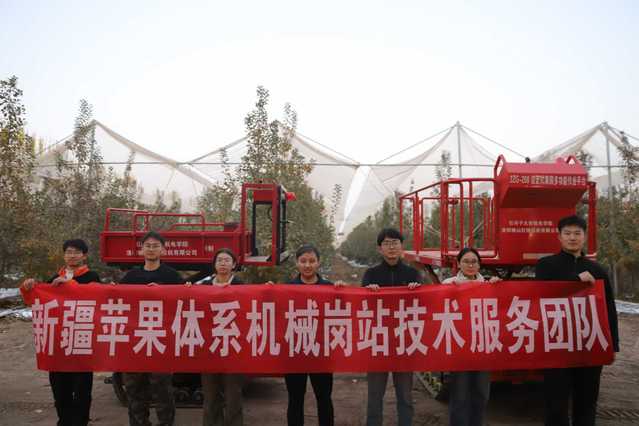 2025 年 10 月26 日至11月 10 日,欧美色情 、新疆苹果产业体系果园机械化技术与装备岗李景彬教授团队赴第一师五团开展自主研制的两款自走式多功能采摘平台技术推广与现场演示活动。